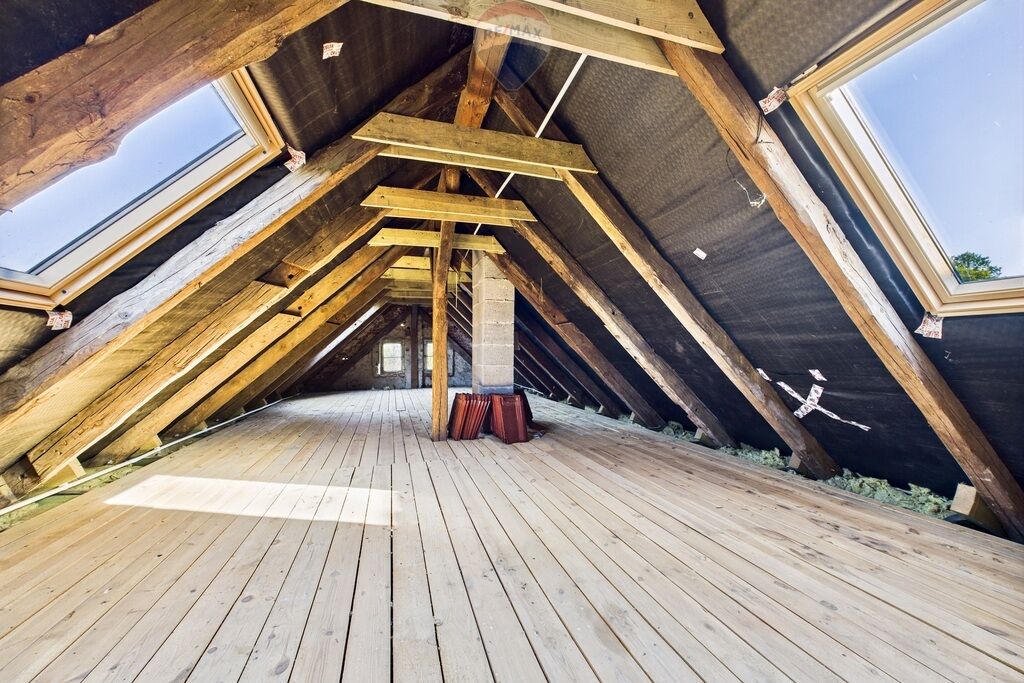 - nowe pokrycie dachowe z ociepleniem (wełna mineralna 20 cm),